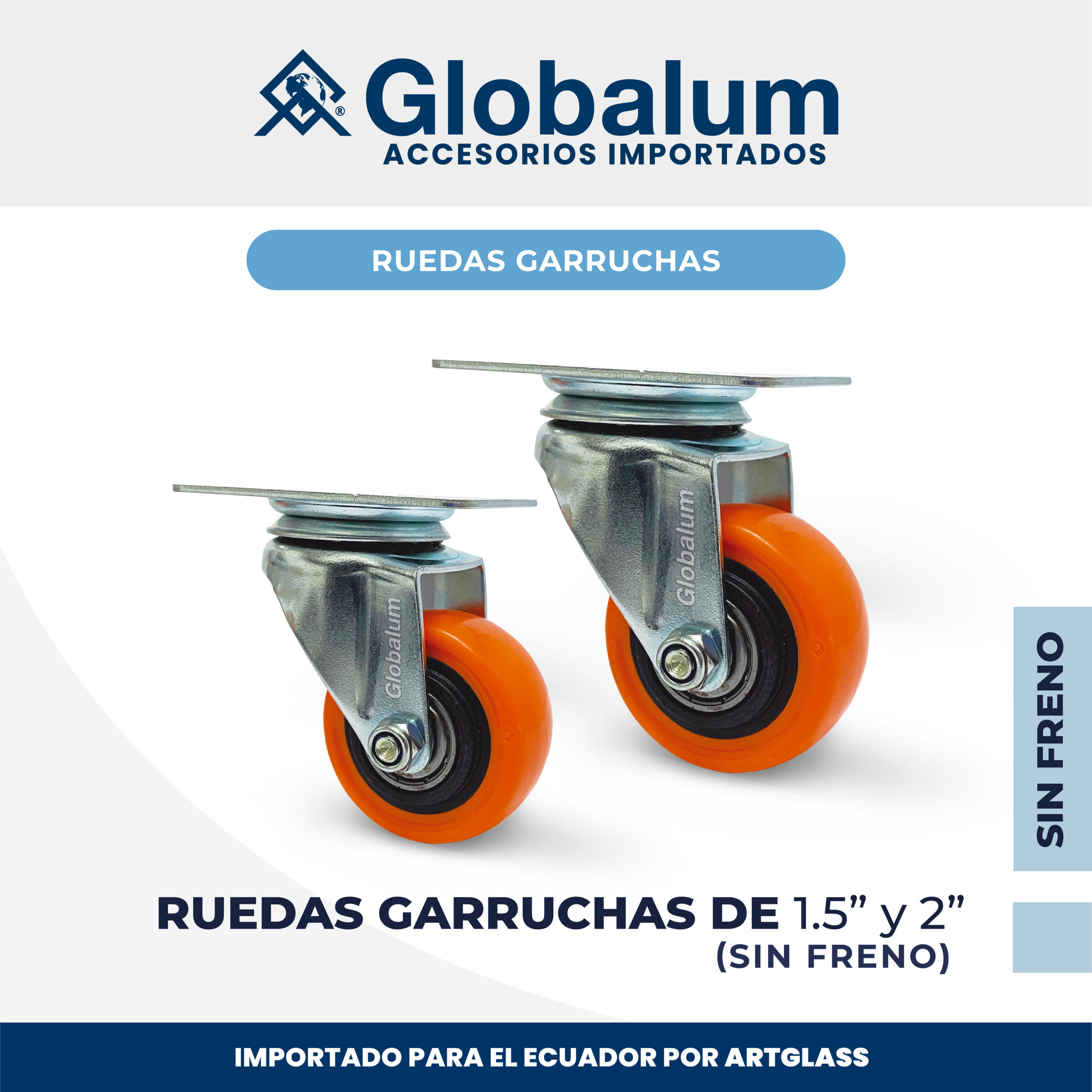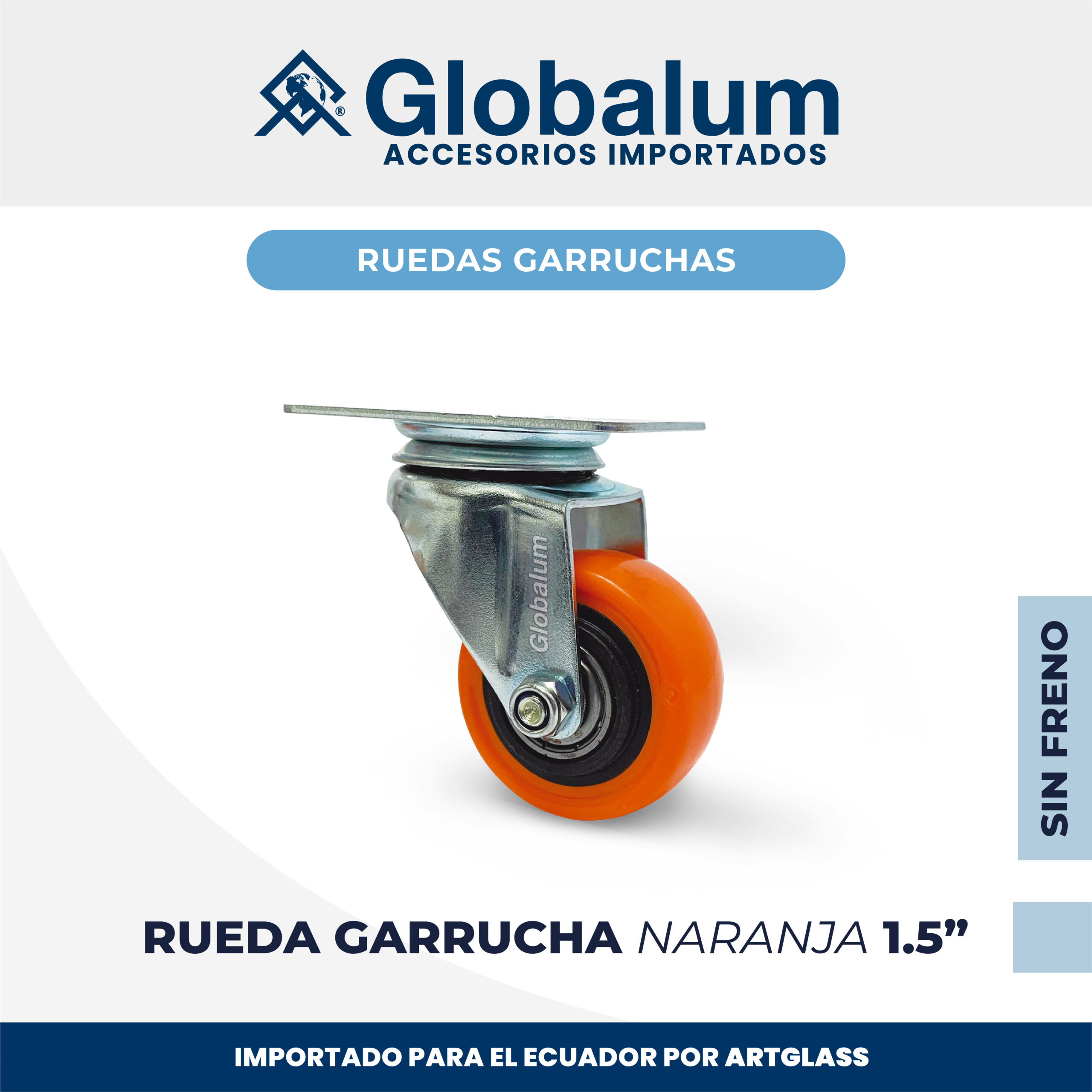 Rueda Garrucha de 1.5” Globalum®, giratoria 360°, sin freno. Resistente, práctica y perfecta para muebles, estructuras y proyectos de movimiento seguro
